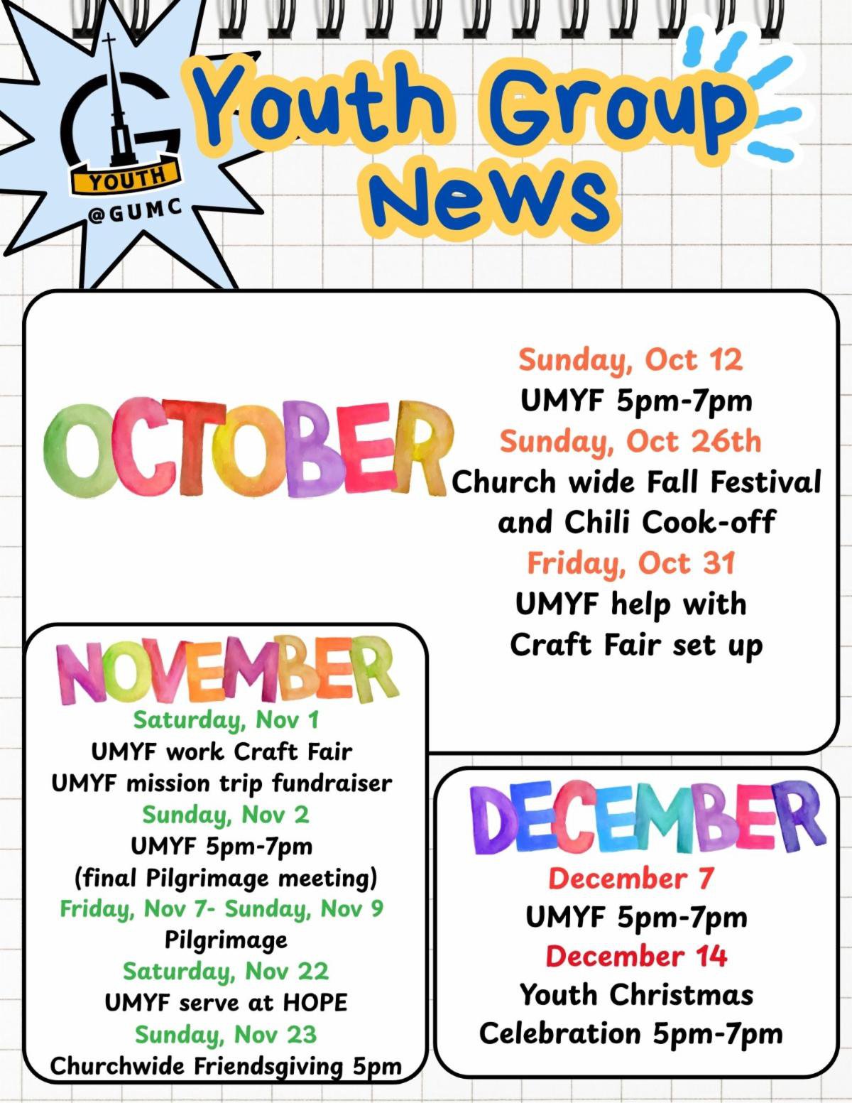Upcoming United Methodist Youth Fellowship Events!